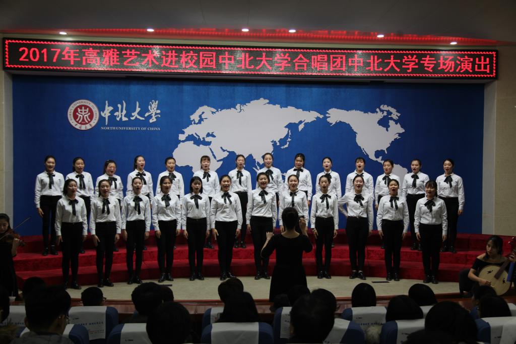 整场音乐会通过多首或欢快、或悠扬、或深情,或奔放的歌曲,为师生呈现出了一幅幅生动形象的草原生活图。演出分混声无伴奏合唱、混声合唱、男生合唱和女生合唱四种类型。共有13首合唱曲目。一首首雄浑激昂的草原特色民歌,展现了草原儿女们自然淳朴的感情和崇高质朴的文化自信。所有的合唱曲目在全团成员的共同演绎下赢得了现场师生的阵阵掌声。此外,在演唱过程中还穿插了钢琴、小提琴等器乐合奏。